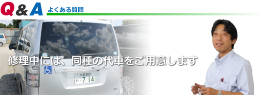 事故や故障によって、お車が動かない場合には、レッカー車を手配しお引取りにまいります。また、代車をご利用の場合には、同種の福祉機能を備えたレンタカー車両をご用意いたします。